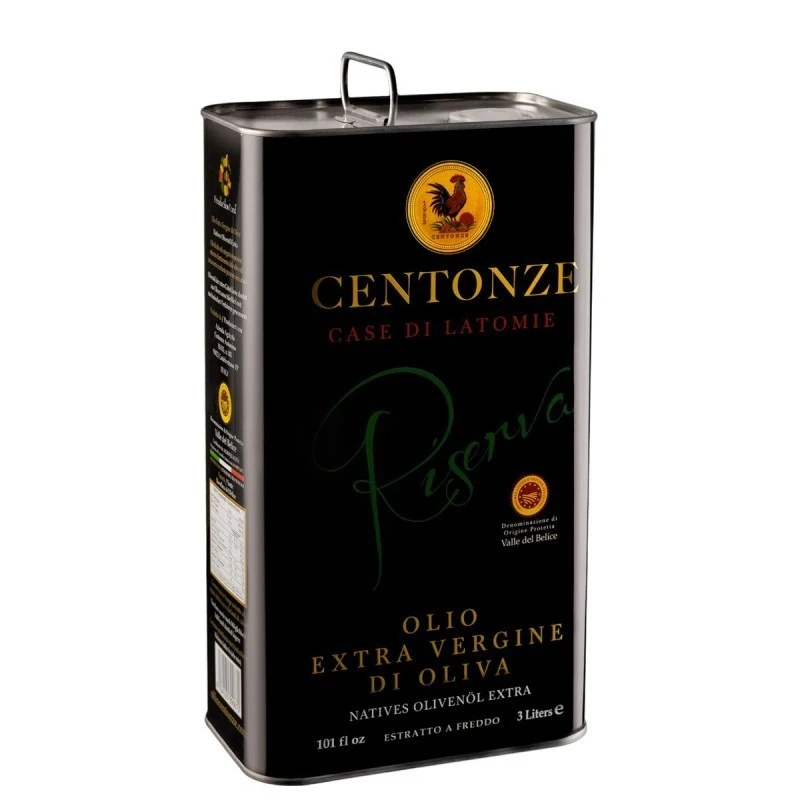 The Extra virgin olive oil PDO Valle del Belice can produced by Centonze is a monocultivar oil of Nocellara del Belice DOP is obtained by selecting and harvesting by hand the smallest green olives grown exclusively in inside the company Case di Latomie. It is characterized by a medium-intense fruitiness and a very well balanced bitterness and spicy.