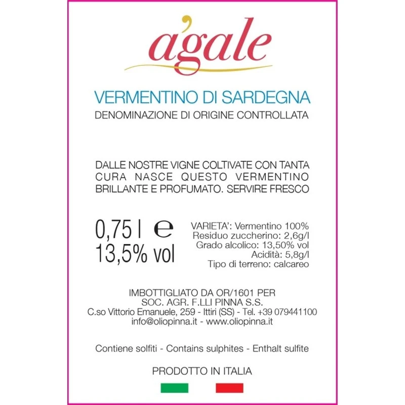 The White Wine Agale Vermentino di Sardegna DOC by Fratelli Pinna is a wine obtained from Vermentino grapes that expresses the whole territory of Sardinia through its delicate and velvety bouquet. It is a pleasant, fresh and elegant wine.