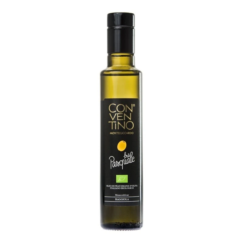 The Extra Virgin Olive Oil Frà Pasquale monocultivar Raggiola ‘ Conventino’ is manufactured with olives of the exclusive variety ‘Raggiola’, the harvest period occurs after a meticulous selection.