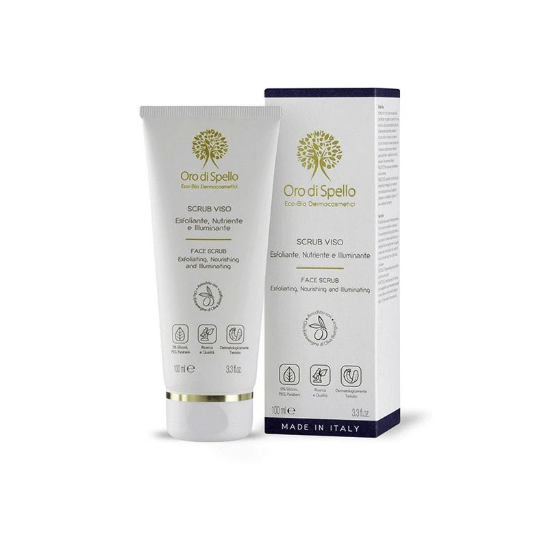 The Face Scrub of Oro di Spello plays a delicate exfoliating, nourishing and illuminating action on the skin. It is ideal for making any type of skin shine, with the exception of those that are hyperdelicate or subject to rosacea.