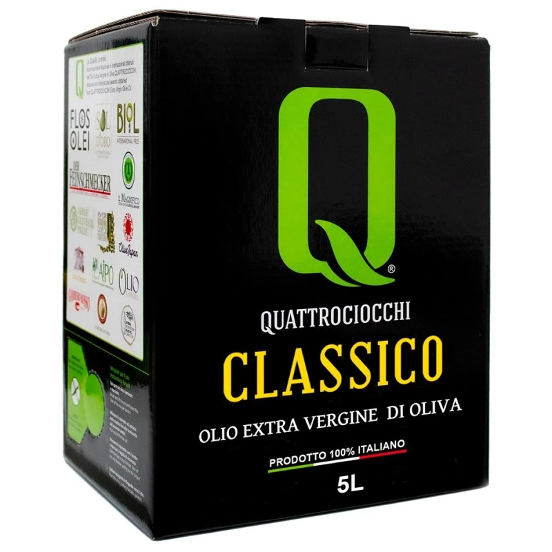 The Extra Virgin Olive Oil Classico Bag in Box 5 lt Quattrociocchi is produced from carefully selected olives Itrana, Moraiolo and Leccino, cultivated in the organic farm of Quattrociocchi in Alatri. The olive groves are located on Ernici, they are all exposed to the sun and caressed by the breeze foothills. The hand-picked olives are milled daily in the Quattrociocchi’s mill.